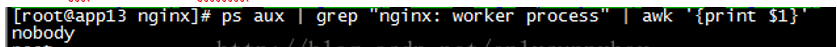 命令:ps aux | grep "nginx: worker process" | awk '{print $1}'