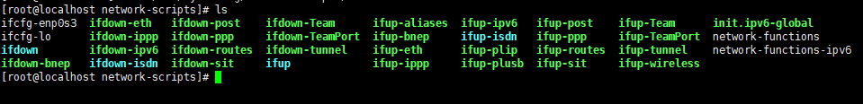 使用ls命令,列出该目录下的文件。其中“ifcfg-enp0S3”的文件,为我们需要修改的网络配置文件。