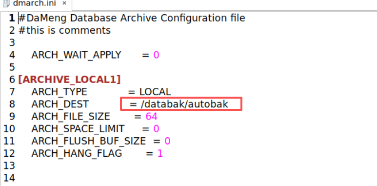 在/data/dmdba/dmdbms/data/DAMENG下找到dmarch.ini