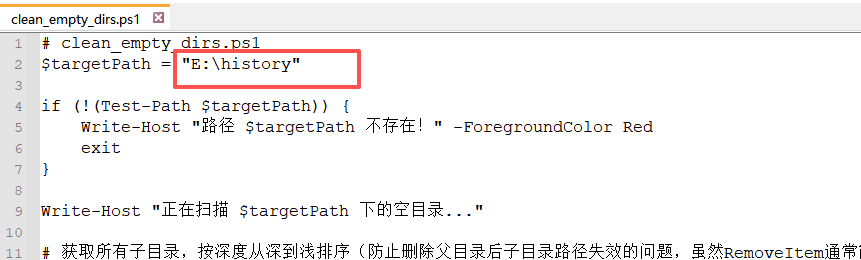修改需要清理的父目录路径,鼠标右键用PowerShell管理员执行